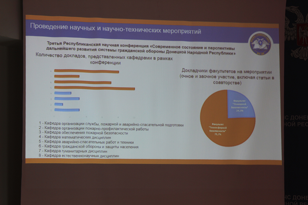 Направлению научной деятельности Академии были посвящены три вопроса повестки дня заседания Учёного совета. Итоги научной деятельности ГОУВПО «Академия гражданской защиты» МЧС ДНР в 2019-2020 учебном году были подведены заместителем начальника академии (по научной работе) К.Н. Лабинским, д. тех. н., доцентом. Также, по направлению научной деятельности Академии был рассмотрен вопрос о работе Совета молодых ученых за 2019-2020 учебный год и намечены перспективы на будущий год. Результаты Второй Республиканской научно-технической конференции «Пожарная безопасность объектов Республики», приуроченной ко Дню пожарной охраны, доложил подполковник службы гражданской защиты Мандрыка В.С., начальник кафедры обеспечения пожарной безопасности факультета «Пожарной безопасности».