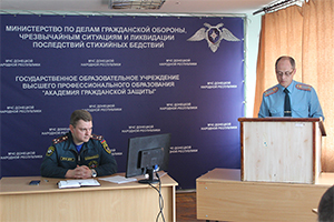 Полковник службы гражданской защиты Старостенко М.Б., начальник факультета «Техносферной безопасности», к. тех. н., доцент осветил вопрос о необходимости внесения изменений в учебные планы по специальности 20.05.01 Пожарная безопасность очной и заочной форм обучения, 20.03.01 Техносферная безопасность очной формы обучения и 20.04.01 Техносферная безопасность заочной формы для повышения эффективности учебного процесса в будущем учебном году.