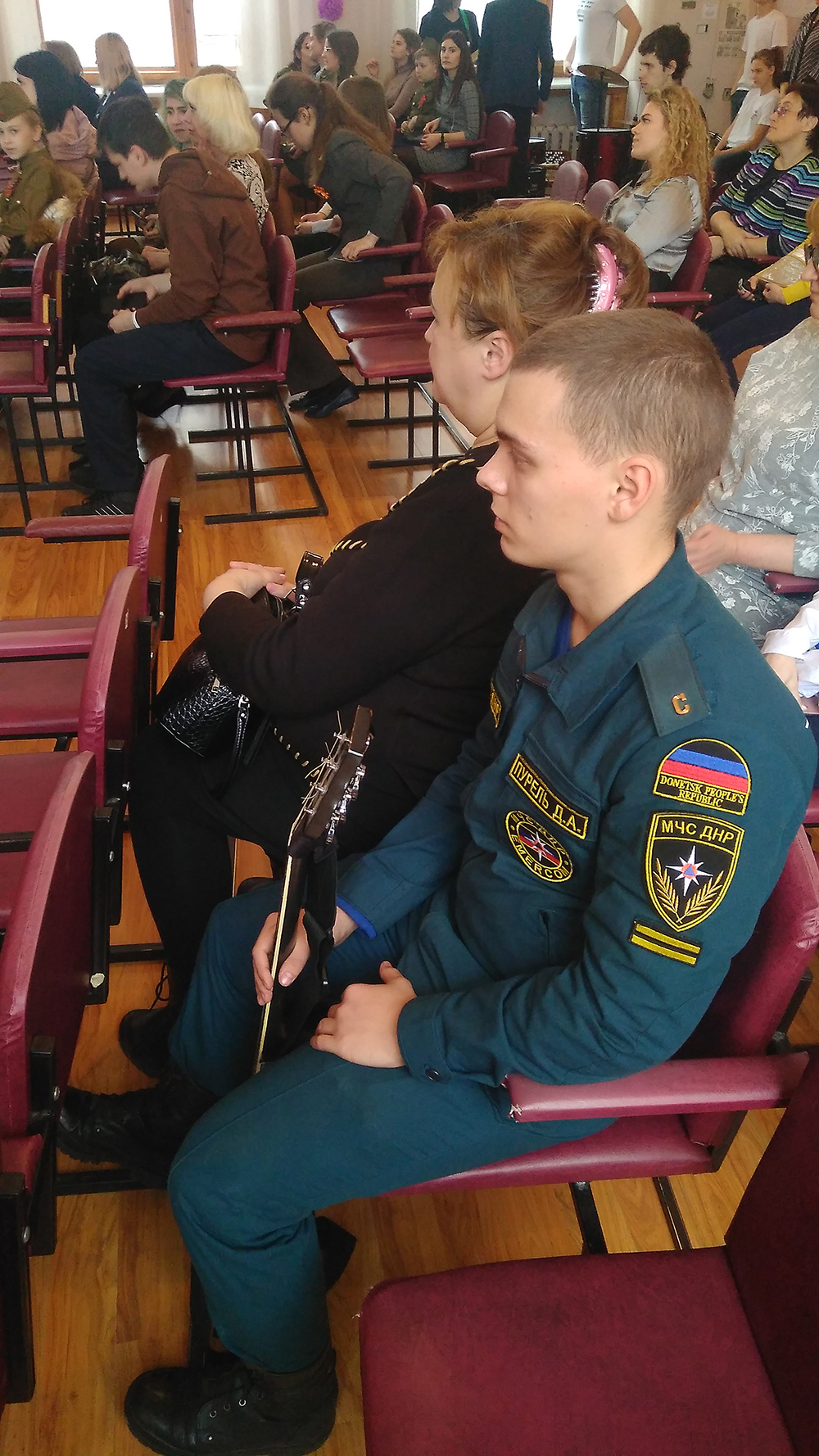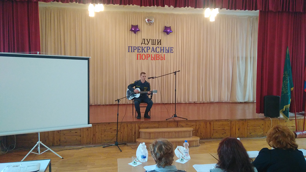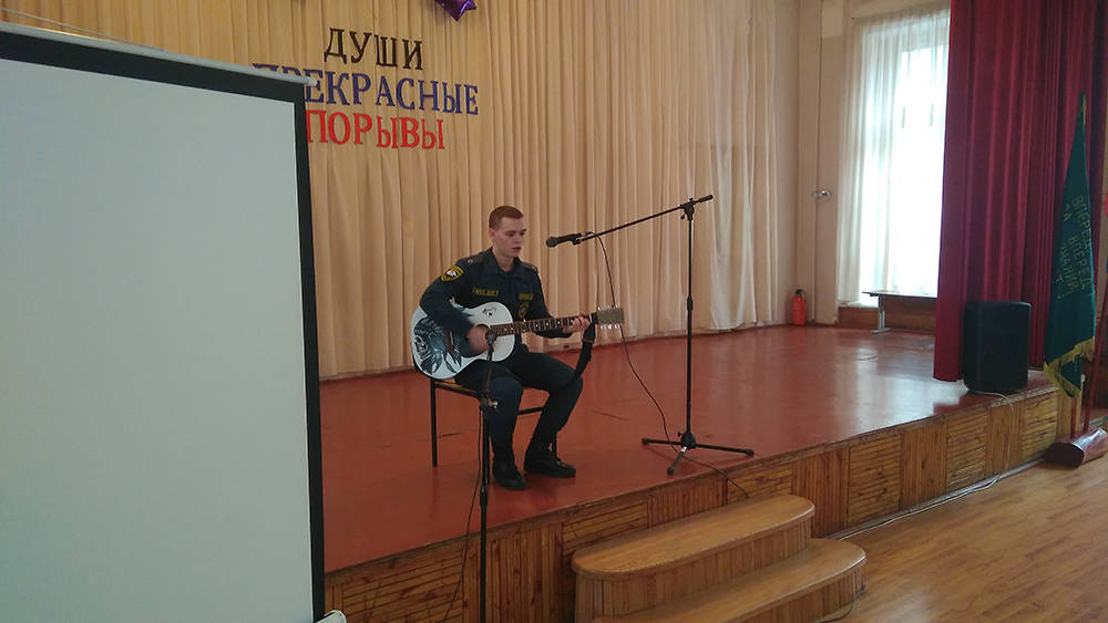 С целью воспитания чувства патриотизма у молодёжи, любви к Родине, раскрытия творческого потенциала в молодежной среде, 18 февраля 2020 года студент факультета «Пожарной безопасности» Пурель Денис принял участие в районном этапе Республиканского фестиваля военно-патриотической песни и поэзии «Родине посвятим души прекрасные порывы» с авторской песней «Ты терял ордена», который прошел в Муниципальном общеобразовательном учреждении «Школа № 22 г. Донецка».