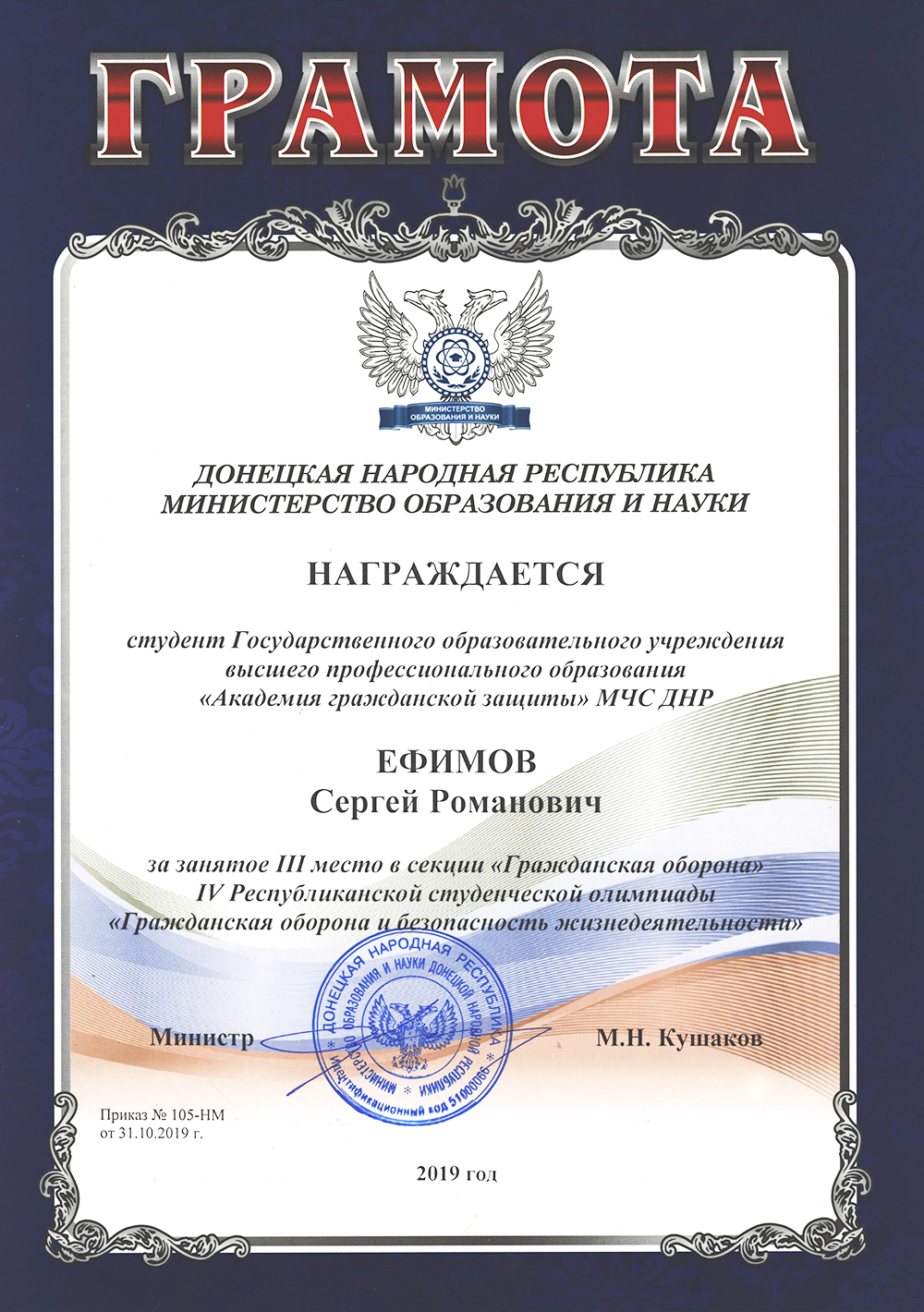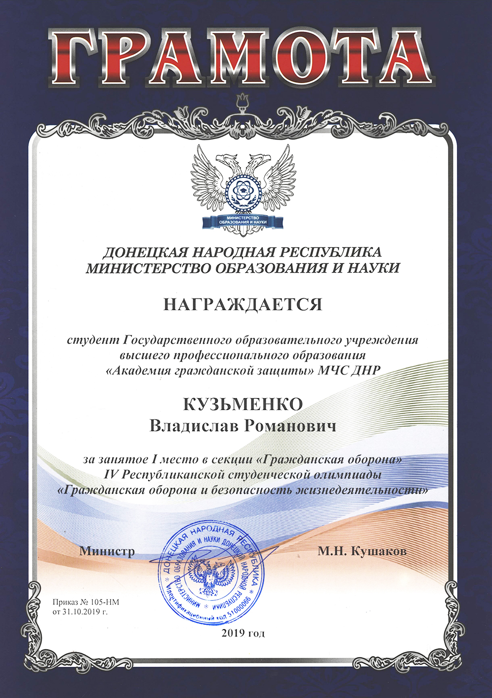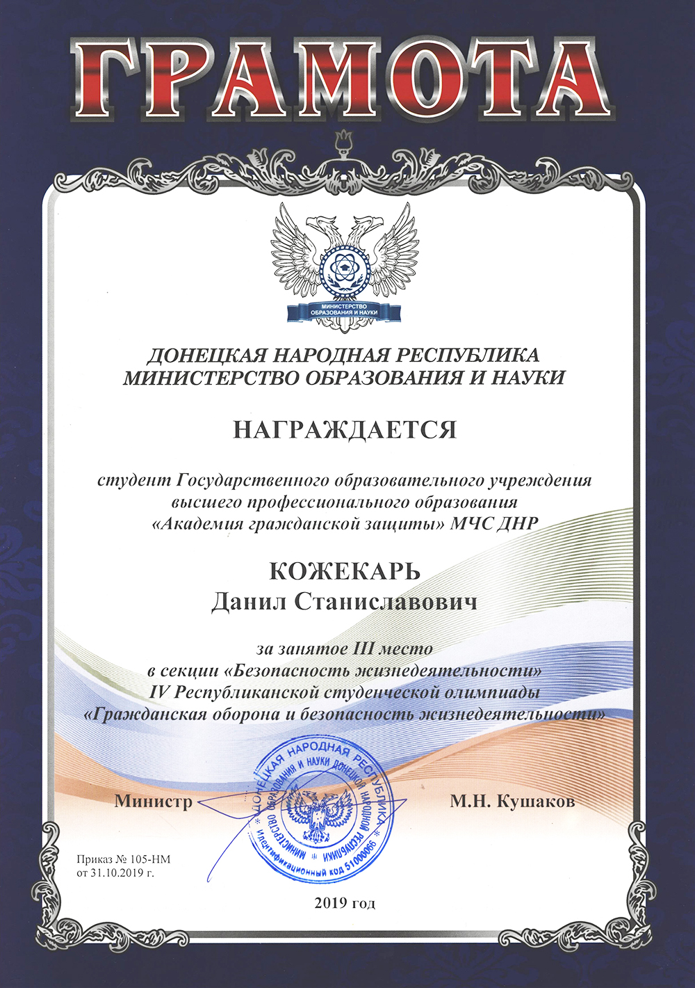 29 ноября 2019 года в ГОУВПО «Академия гражданской защиты» МЧС ДНР состоялось заседание Учёного совета под председательством начальника академии полковника службы гражданской защиты М.Л. Кожевникова.