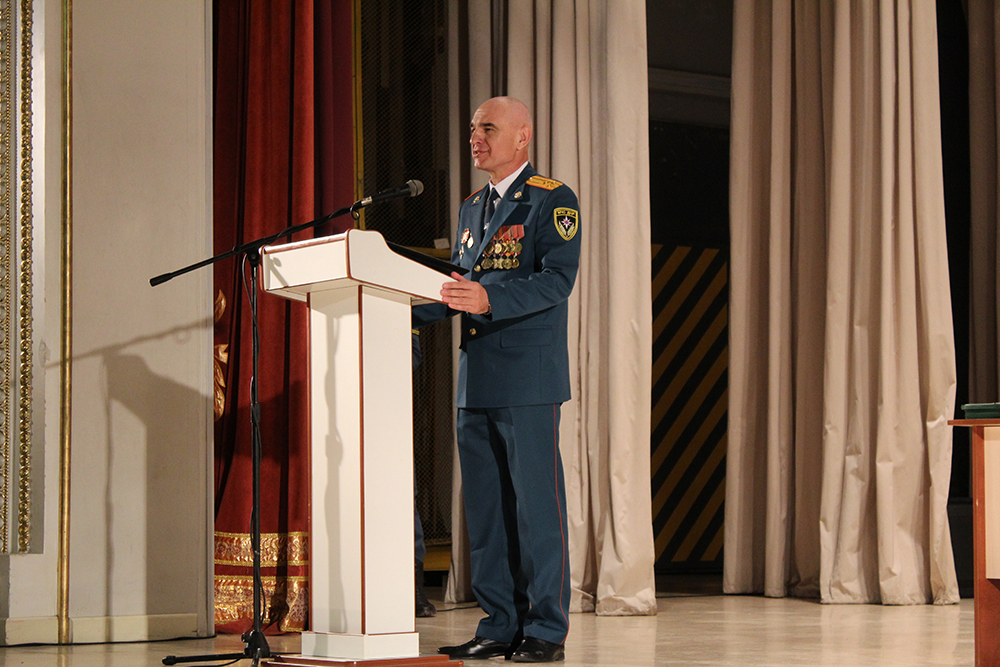 С поздравительным словом к выпускникам обратился начальник Академии полковник службы гражданской защиты Стефаненко Павел Викторович: «Сегодня Вы стали первыми выпускниками Академии гражданской защиты МЧС ДНР. Уверен, что Вы с достоинством и честью пронесете по жизни высокое звание выпускника нашей Академии, покажете высокие знания и мастерство, всегда будете с благодарностью вспоминать своих командиров и педагогов и никогда нас не подведете.».