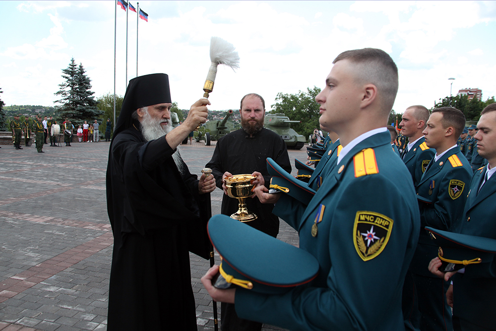 Продолжением мероприятия стало проведение церемонии освящения первых выпускников и прощания со Знаменем Академии. Выпускники также возложили цветы к монументу «Твоим освободителям, Донбасс» и почтили память героев минутой молчания.