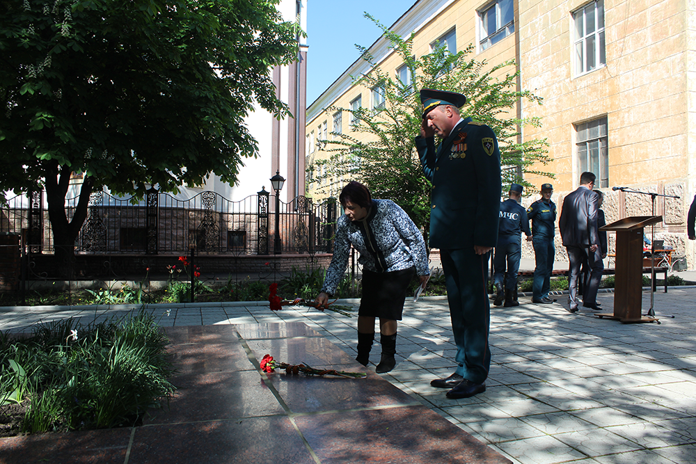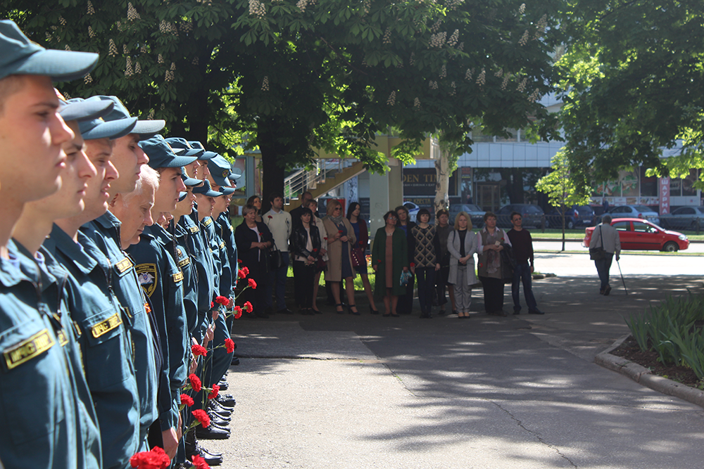 Почтить память погибших пришли руководство, преподаватели и студенты Академии гражданской защиты МЧС ДНР.