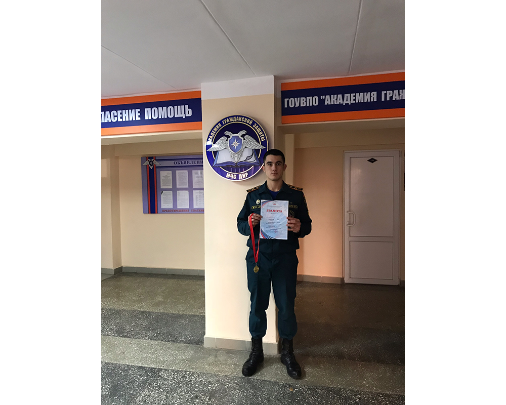 Руководство Академии поздравляет курсанта группы ЗЧС-15к Понамарева Юрия с занятым I местом в Открытом Кубке Донецкой Народной Республики по кикбоксингу среди взрослых и юниоров в разделе К1! Поздравляем победителя соревнования с заслуженной наградой! Желаем дальнейших спортивных успехов и новых побед!
