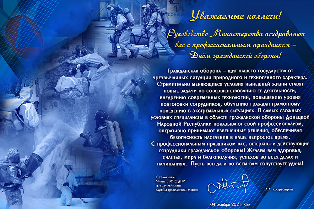 Поздравление Министра МЧС ДНР Алексея Александровича Кострубицкого с Днем гражданской обороны