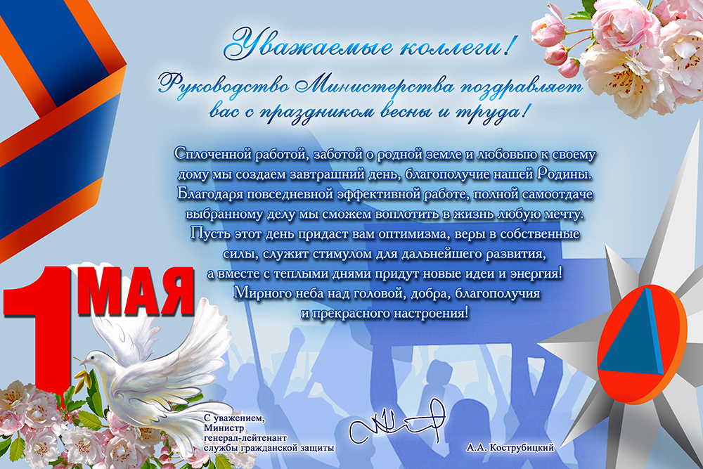 Поздравление Министра МЧС ДНР Алексея Александровича Кострубицкого с Праздником Весны и Труда - 1 мая