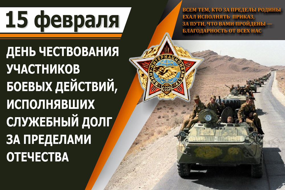 15 февраля – День чествования участников боевых действий, исполнявших служебный долг за пределами Отечества