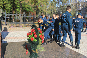 Возложение цветов к памятнику «Пожарный-спасатель»