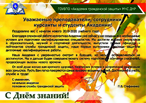 Поздравление начальника ГОУВПО "Академия гражданской защиты" МЧС ДНР полковника службы гражданской защиты профессора Стефаненко Павла Викторовича с Днем знаний и началом нового учебного года