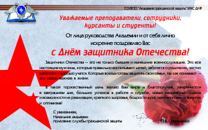 Поздравление начальника ГОУВПО "Академия гражданской защиты" МЧС ДНР полковника службы гражданской защиты Стефаненко Павла Викторовича с Днём защитника Отечества