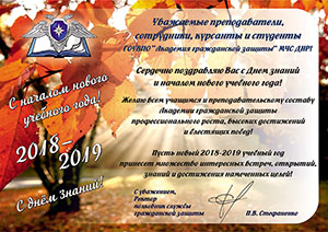 Поздравление ректора ГОУВПО "Академия гражданской защиты" МЧС ДНР полковника службы гражданской защиты Стефаненко Павла Викторовича с Днем знаний и началом учебного года