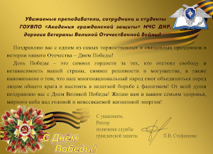 Поздравление ректора ГОУВПО "Академия гражданской защиты" МЧС ДНР полковника службы гражданской защиты Стефаненко Павла Викторовича с Днем Победы