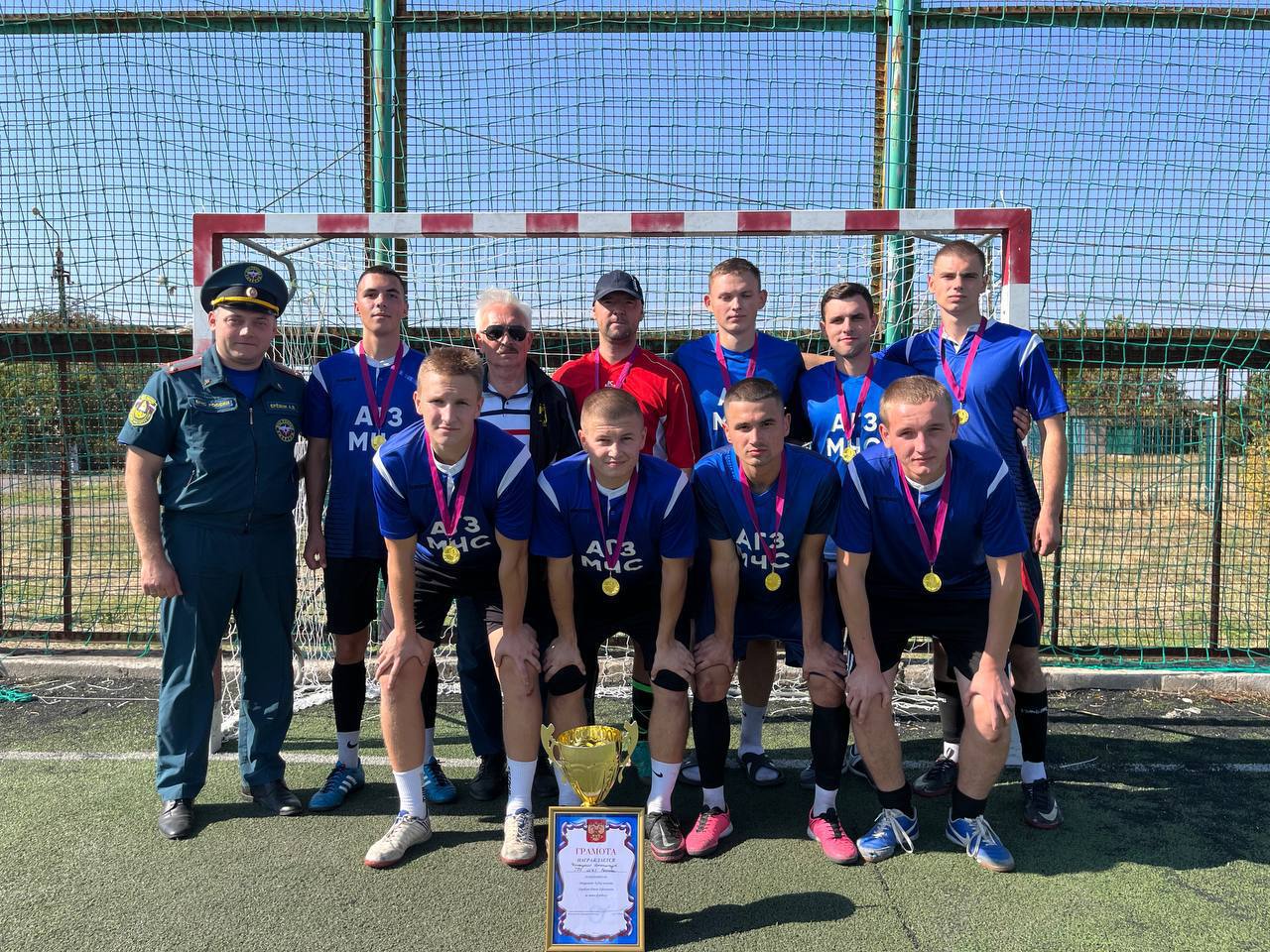 Сборная команда Донецкого института ГПС МЧС России празднует триумфальную победу в турнире по мини-футболу, посвященном памяти И.Е. Харабуги