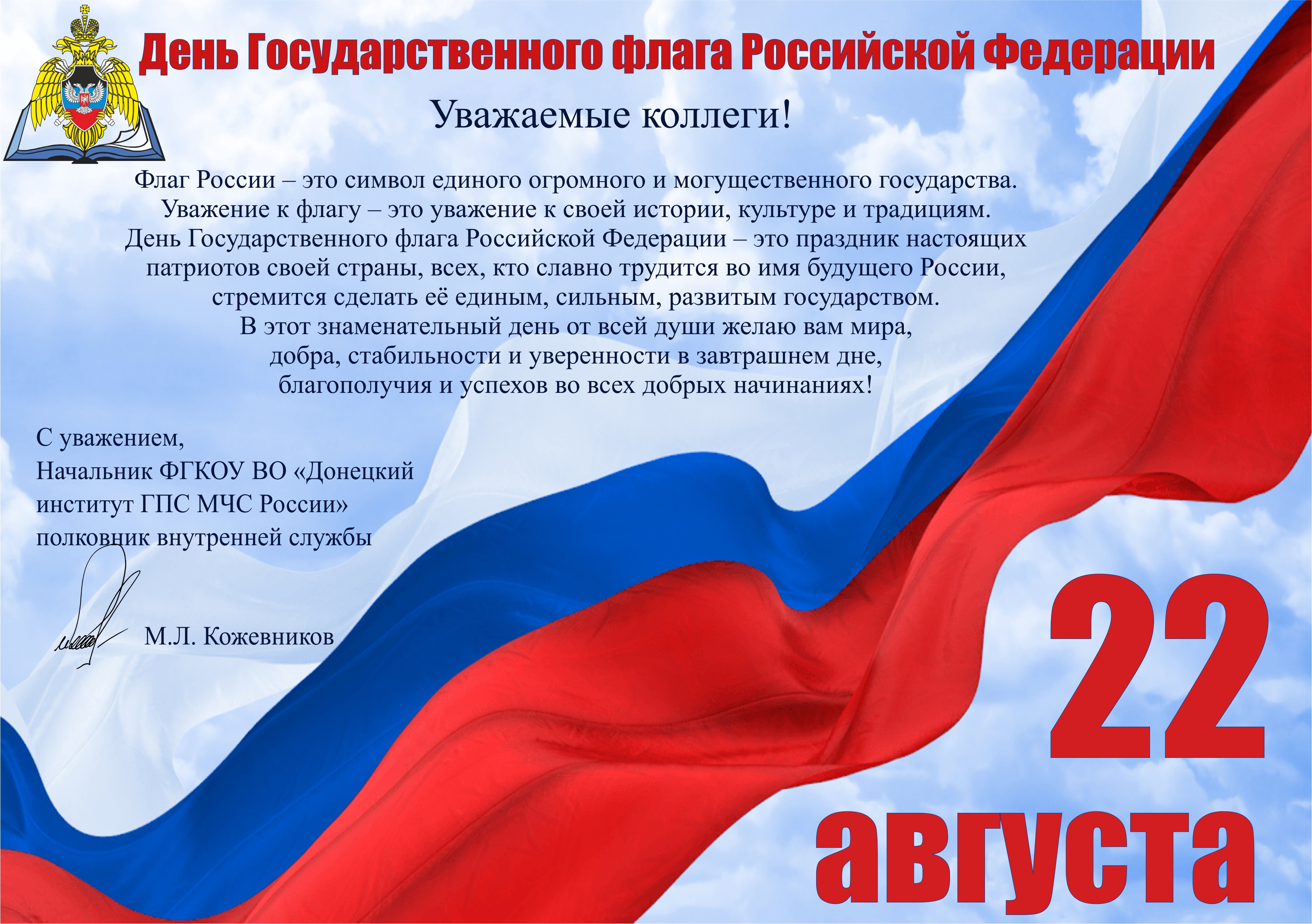 В Донецком институте ГПС МЧС России прошло торжественное построение личного состава по случаю празднования Дня Государственного флага Российской Федерации