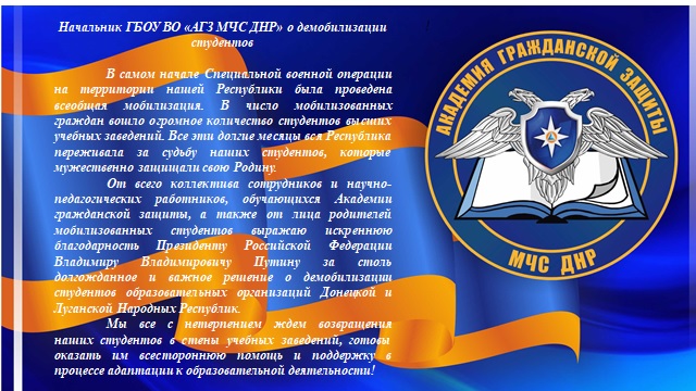 Начальник ГБОУ ВО «АГЗ МЧС ДНР» о демобилизации студентов